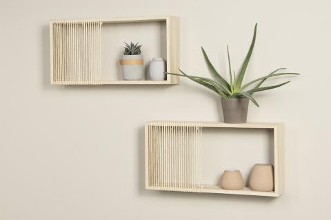 Maak gebruik van natuurlijke materialen. Breng natuur in huis voor een rustige en harmonieuze sfeer. De Home office collectie kenmerkt zich door het gebruik van echte hout en enkele stalen details. De collectie is nu uitgebreid met verschillende items, waaronder een wandschap met touw, planken met lades en slimme wandbureauoplossingen.