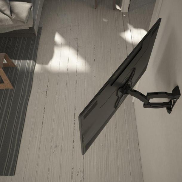 Deze stevige functionele full motion TV steun is geschikt voor alle schermen van 26 tot 42 inch en is speciaal ontworpen voor kleine schermen. De standaard gaten in deze steun zijn geschikt voor VESA 75x75 en 200x200. Door de mat zwarte kleur valt hij amper op en sluit deze goed aan bij het beeldscherm. Dit product is ontworpen om te worden geïnstalleerd op wanden met houten stijlen of massieve betonnen wanden. Zorg er voor de installatie voor dat de muur de gecombineerde belasting van de apparatuur en hardware kan dragen. Overschrijd nooit het maximale laadvermogen van 25 KG, anders kan het product defect raken of persoonlijk letsel veroorzaken.