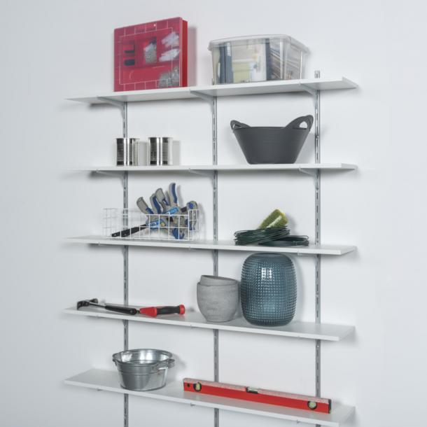 Deze F-railset enkel hoort hij het verticale wand opberg F-systeem. Dit systeem is uitermate geschikt voor het organiseren van o.a. hobbyruimte, schuur, garage en elke andere opbergruimte. Functioneel ontwerp met een groot draagvermogen. Beschikbaar in vele maten en kleuren.