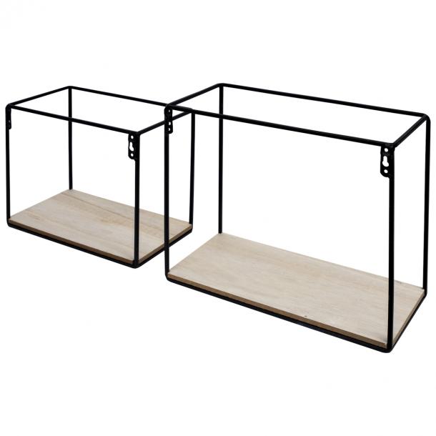 - Wandkubus stalen frame houten bodem S/2 Zwart 30x25x14cm