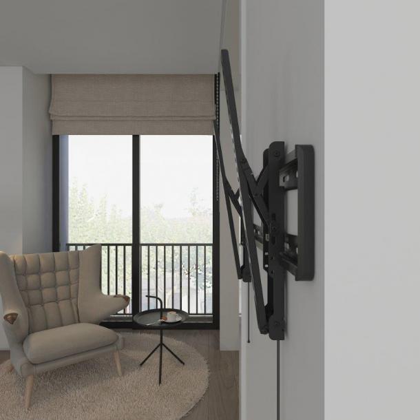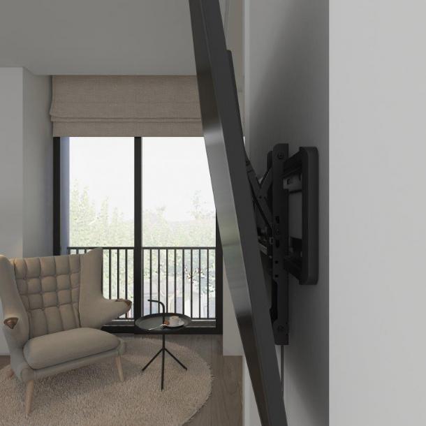 This sturdy functional tilting TV mount is suitable for all screens from 32 to 70 inch and is specially designed for large screens. The standard holes in this mount are suitable for VESA 600x400. Due to the matte black color, it is barely noticeable and fits well with the screen. This product is designed to be installed on timber stud walls or solid concrete walls. Before installation, make sure that the wall can support the combined load of the equipment and hardware. Never exceed the maximum load capacity of 40 KG, otherwise the product may malfunction or cause personal injury.