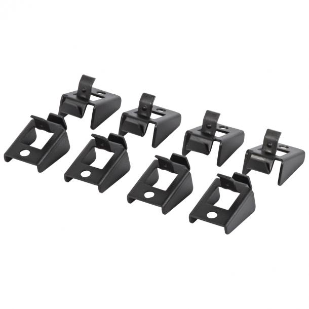 - Product description The storage mounting clips black set of 8 belong to the shelves, wire shelves and wine rack of the Duraline hanging and standing storage system and create a modern, functional open storage solution. Which can be used in multiple ways such as for clothes, books, shoes, kitchen items and much more. The package contains 8 screws to attach the mounting clips to the wooden shelves.